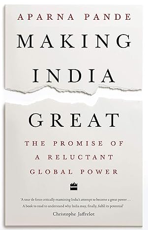 India will be the world's most populous country by 2024 and its third largest economy by 2028. But the size of our population and a sense of historical greatness alone are insufficient to guarantee we will fulfil our ambition to become a global power. Our approach to realize this vision needs more than just planning for economic growth. It requires a shift in attitudes.In Making India Great, Aparna Pande examines the challenges we face in the areas of social, economic, military and foreign policy and strategy. She points to the dichotomy that lies at the heart of the nation: our belief in becoming a global power and the reluctance to implement policies and take actions that would help us achieve that goal. The New India holds all the promise of greatness many of its citizens dream of. Can it become a reality? The book delves into this question.